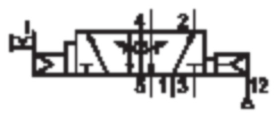 - Switching principle: 5/2, with air spring return