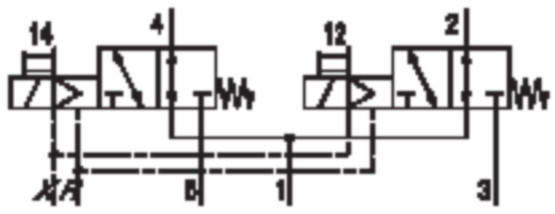 - Switching principle: 2x 3/2 NO/NO, with spring return