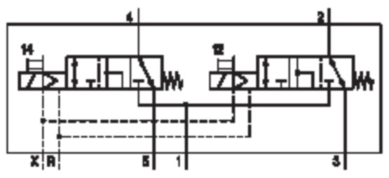 - Switching principle: 2x 3/2 NC/NC, with spring return