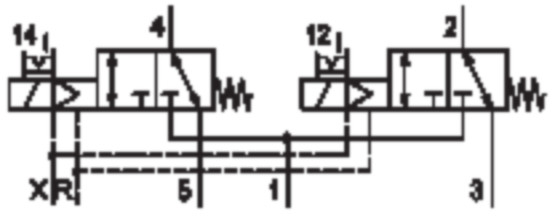 - Switching principle: 2x 3/2 NC/NC, with spring return
