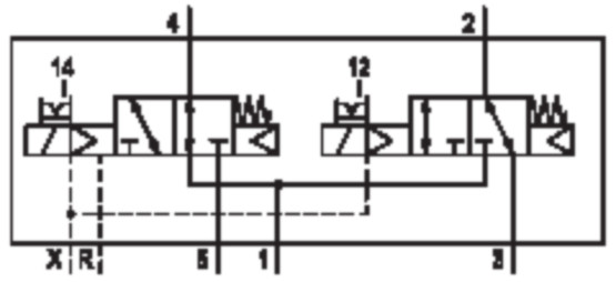 - Switching principle: 2x 3/2 NO/NC, with spring return