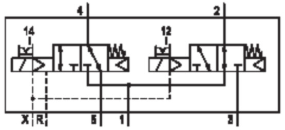 - Switching principle: 2x 3/2 NC/NO, with spring return