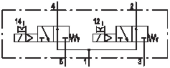 - Switching principle: 2x 3/2 NO/NO, with spring return
