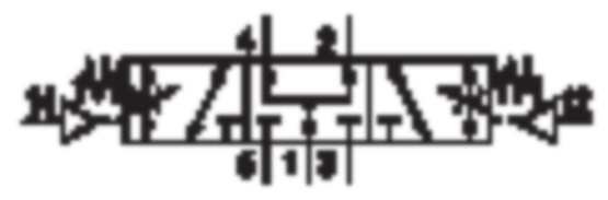 Pneumatically actuated directional valve with 1100 l/min flow rate. 16 bar working pressure. ISO 5599-1.