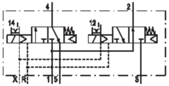 - Switching principle: 2x 3/2 NC/NO, with spring return
