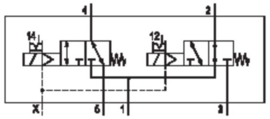 - Switching principle: 2x 3/2 NC/NO, with spring return